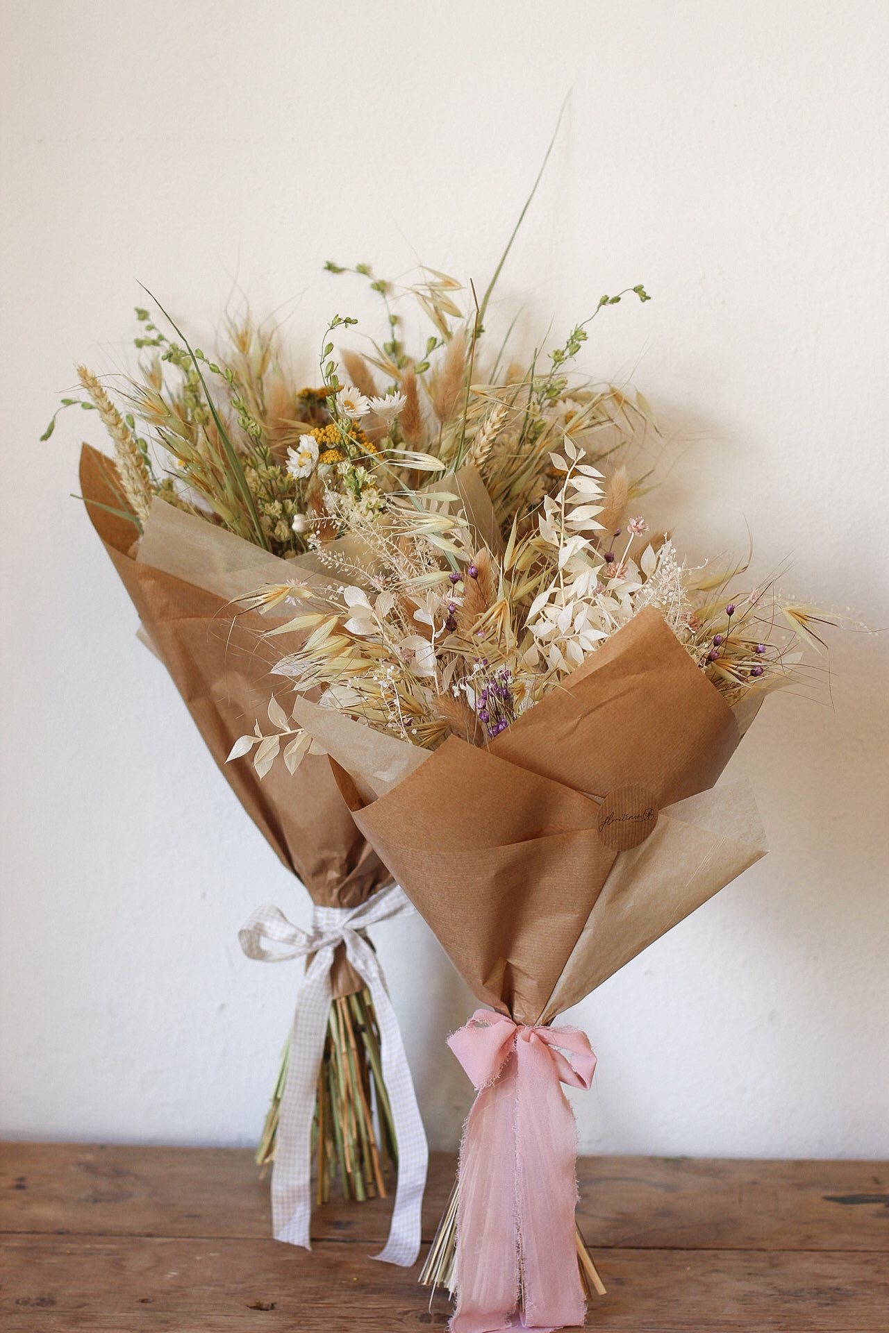 Cada ramo de flores secas está diseñado con espigas, flores y elementos naturales en tonos suaves y neutros, lo que los convierte en una pieza decorativa versátil que encaja a la perfección en cualquier estilo de interior: desde ambientes rústicos y bohemios hasta espacios modernos y minimalistas. Su estética natural aporta calidez, textura y un toque orgánico a cualquier estancia.